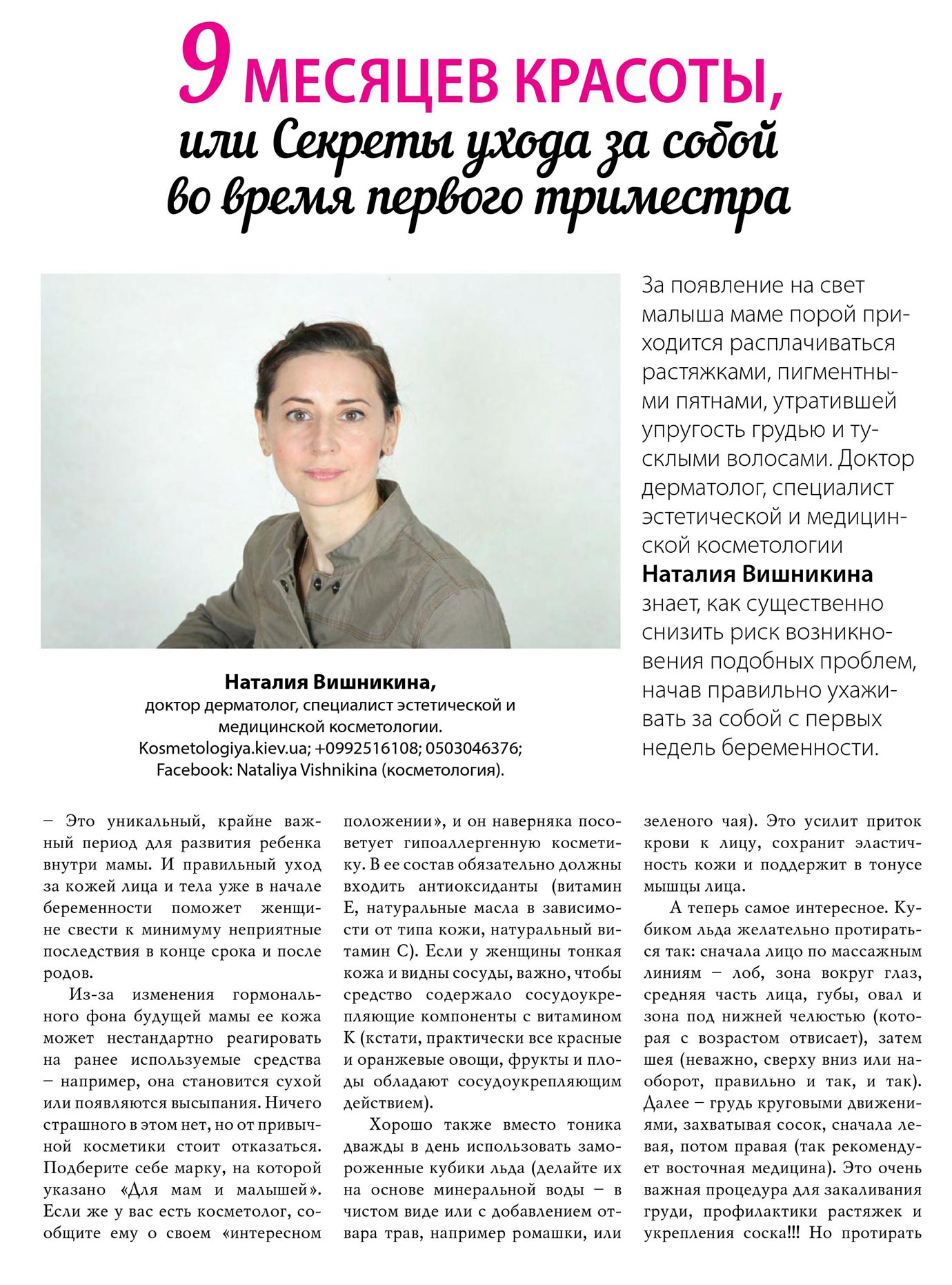 Доктор дерматолог, специалист эстетической и медицинской косметологии, Наталия Вишникина знает, как существенно снизить риск возникновения растяжек, пигментных пятен, начав правильно ухаживать за собой с первых недель беременности.